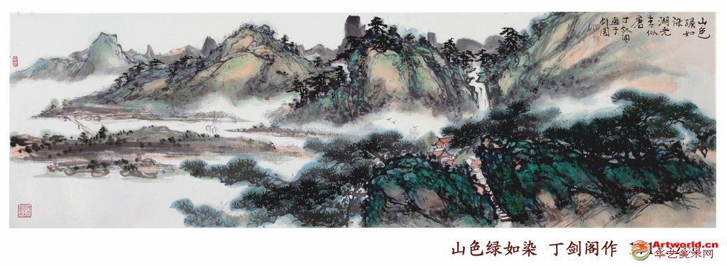 余撰《丁日昌先生年谱》,知丁氏为吾潮巨室望族之一。洎其先祖丁公一郎于清顺治初,自福建长乐来居广东揭阳丰顺,第十代贤拔公,慷慨好义,以子贵赠光禄大夫。其子丁日升,以军功封武功将军;丁达夫以书名世;丁日昌为福建巡抚;此后,丁惠衡、惠馨、惠康、惠尧、惠良、惠琛、学诗、学书、志德、韵初、逸史、天骏、家骏等等,或以军功,或以吏治,或以书法,或以诗歌,或以企业名闻一时,而其中尤以丁日昌为洋务运动主将,官至总督衔兼总理各国事务大臣而名知海内;丁惠康与谭嗣同、陈三立、吴保初并称“清末四公子”;丁韵初被石遗老人誉为“三世诗孙”;丁家骏则以“石油大王”闻名于世,丁逸史、天骏昆仲以诗书并称。健在而我所获交者,则有香港历史博物馆馆长丁新豹博士,揭阳名画家丁剑阁先生。 内容来自A r t w o r l d . c n copyright Artworld.cn 余与剑阁画家获交三十年,知其以悬壶济世外,醉心于国画。早年得其姐夫、著名画家十万山人孙星阁先生身传手教,引入堂奥。之后,生活中或风雨如晦,或五风十雨,数十年晨夕于斯,未曾或辍。尤可贵者,居平喜涉猎群书,兼收并蓄,丰富学养,此古贤谓之“读千卷书”,今彦称为“软实力”者也。中年以降,正大地春风,恩波浩荡,画家得以负笈京华,数登长城,闲游苏杭,勇攀泰岱,瞻仰金陵,横塘缓棹,曲径寻春,此张文通“外师造化”之落实也。俗称“读书医俗,看山壮怀”,剑阁画家深知其中三昧而身体力行之。由是,“上法古人,外师造化,中得心源。”经此三阶段之多年磨砺,乃能挥洒抒写,自得其趣,自得其旨,列于行家好手之伍。画家尤以山水擅长,至若荒村古渡,断涧寒流,怪岩丑树,一峦半岭,以及穷乡绝壑,篱落水边,幽花杂卉,乱石丛篁,无不为粉本,无不随意撷取入画。而未论巨幅小品,或写峰峦之掀天拔地,或绘白虹之一泻天河,或“曲径秋深遍绿苔”,或“又傍奇峰顺水行”,莫不令观者有“雨后峰峦供卧游”之妙想。余品读《丁剑阁画集》之作品,如《纵横郁勃》《松与石同寿》《山色绿如染》《峰外奇峰》《夏峰寻幽》等等,其恢宏奇变,状留景物,能得其真,庶披图以远想,而寄其思于无垠。王伯敏教授称剑阁先生之画“得松烟老墨情韵”,诚然诚然。余并借以为题。 www.Artworld.cn 本文来自华艺美术世界网 丁先生年届古稀,余曾提议刊行《画集》寿之,集成,命作一序附冀尾。余海隅陋士,无生花之笔,而为多年老友,谊不能辞。书此数言,对画家之历经磨砺,赏心春水,事功有得,示忻佩耳。且“粥饭随缘庆古稀”,为先生寿,并祝人笔双健,然“执笔仍多事,惭愧意无新”。 内容来自A r t w o r l d . c n 中国星翁艺苑 孙淑彦于揭阳象贤书房,时万木争荣,花灯初放,正己丑年元春第三日。 www.Artworld.cn
