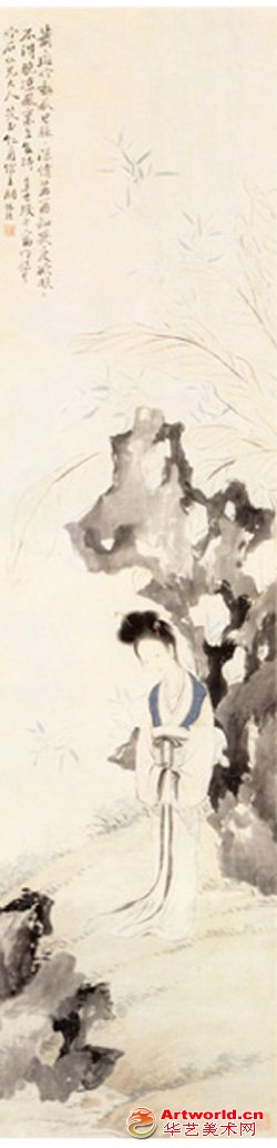 清 胡锡珪,纸本 设色,纵134.5cm,横32.5cm。 本文来自华艺美术世界网