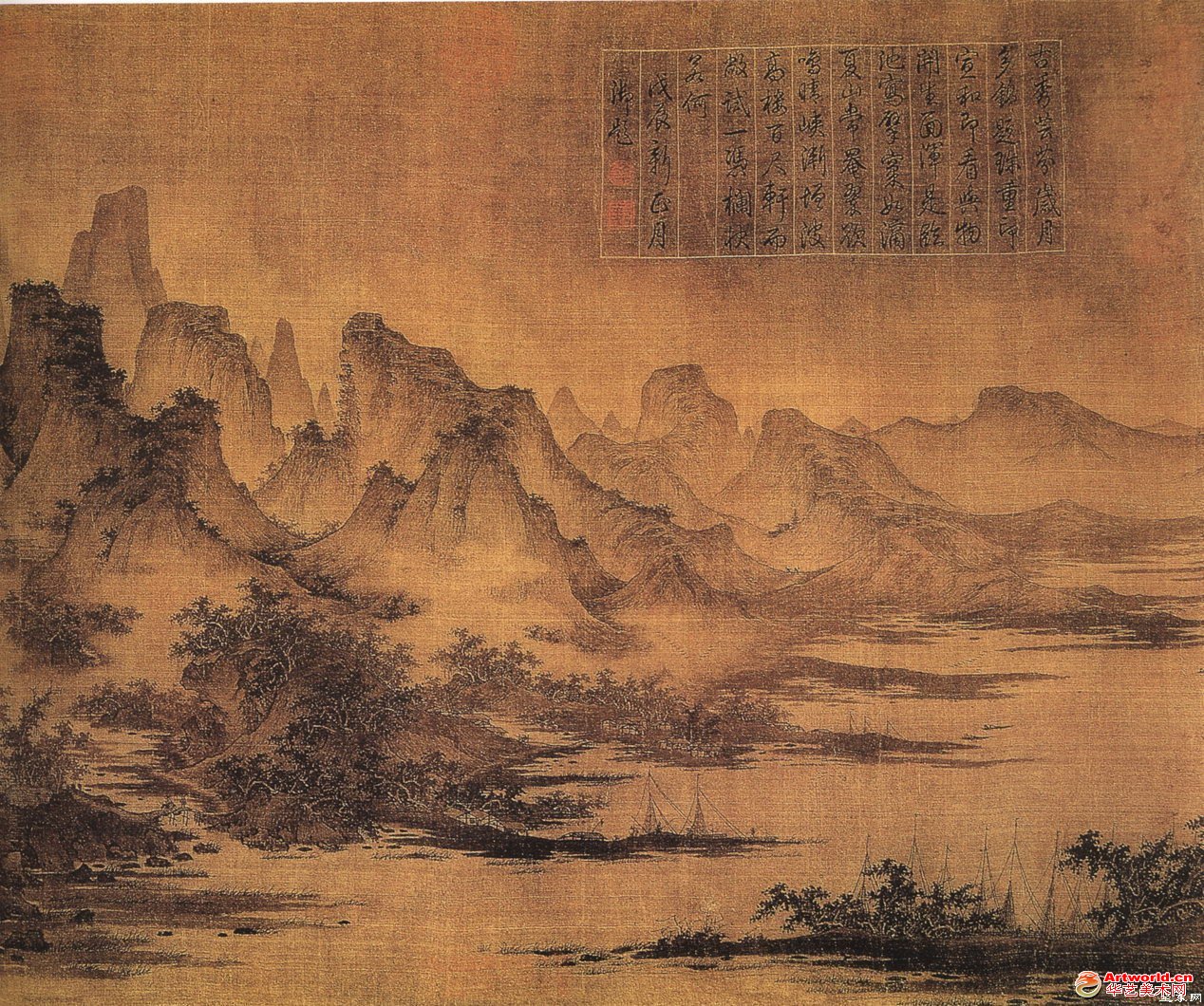 屈鼎,生卒年不详,河南开封人。仁宗朝为图画院祗侯,擅画山水,论者谓其“颇得燕文贵之仿佛”。 ![]() ![]() 【名称】北宋 屈鼎 夏山图 【年代】北宋 【简介】长卷,绢本,淡设色,纵45.3厘米,横115.2厘米。(美)大都会艺术博物馆藏。 本卷为全景式构图,描绘夏季山野景物。卷首为江水沙岸远山隐现的平远之景,继而转入烟笼雾锁的崇山峻岭,点缀以舟桥水榭楼阁寺庙及行旅、渔樵、高隐等人物活动,墨色明润,景物多变,从中可明显看到燕文贵山水的影响。 (责任编辑:子牛) 转载请注明:华艺美术网 » 北宋 屈鼎《夏山图》 |