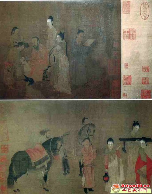 人物画发展到北宋未、南宋初,起了新的变化、那就是风俗画和历史画有了新的发展。风俗画的题村相当广泛,市民生活的各个方面都有所涉及,如市街,城郭、货郎、婴戏、仕女、车马、耕织以及村学、村牧、运粮、航船等等。 copyright Artworld.cn