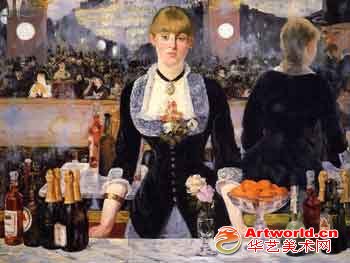 画《弗莉·贝尔杰酒吧间》现藏于伦敦考陶尔德美术馆 中国星翁艺苑 19世纪印象派的产生是西洋美术发展史上极为重要的一个转折点,而此流派的奠基人,即是主张“为艺术而艺术”的法国绘画大师——马奈。虽然他从未真正参加印象派的展览,但他深具革新精神的艺术创作态度,却深深影响了莫奈、塞尚、梵·高等新兴画家,进而将绘画带入现代主义的道路上。 本文来自华艺美术世界网 爱德华·马奈1832年生于法国巴黎,出身在一个大资产阶级的家庭里;为了献身绘画,他不得不违反父亲的意志。马奈对社会和政治没有什么兴趣,他的心思全都集中在艺术上,因此,他的反抗意识也十分自然地表现在绘画上。当他在库丢尔的画室里学画时,就已经不再盲从地跟着老师,而是临摹古代画家的作品。他把自己的经验和技巧全都用于以自己的方式去解释和表达他所描绘的现实。 www.Artworld.cn