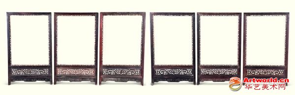 清乾隆 紫檀雕宝相花围树屏风(六片) 96×58cm×6 copyright Artworld.cn