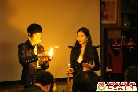 内容来自A r t w o r l d . c n 魔术师“江奥齐、瓮文清”现场表演“飘空桌子”、“火焰钱包” www.Artworld.cn